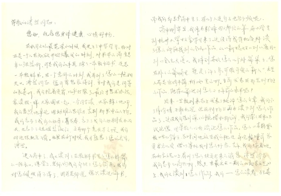 进入高中了,我又读到了在教科书里的您的短篇《一担水》,课堂上,老师向我们介绍了您的简历,我们对您佩服得不得了。因为老师说,您只读过几年书,而我们却是个高中生了,有几个人连句子也写不顺呢。