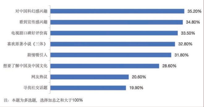图 2 海外五国(美国、英国、法国、澳大利亚、日本)受访者观看腾讯版《三体》的动因 [10]