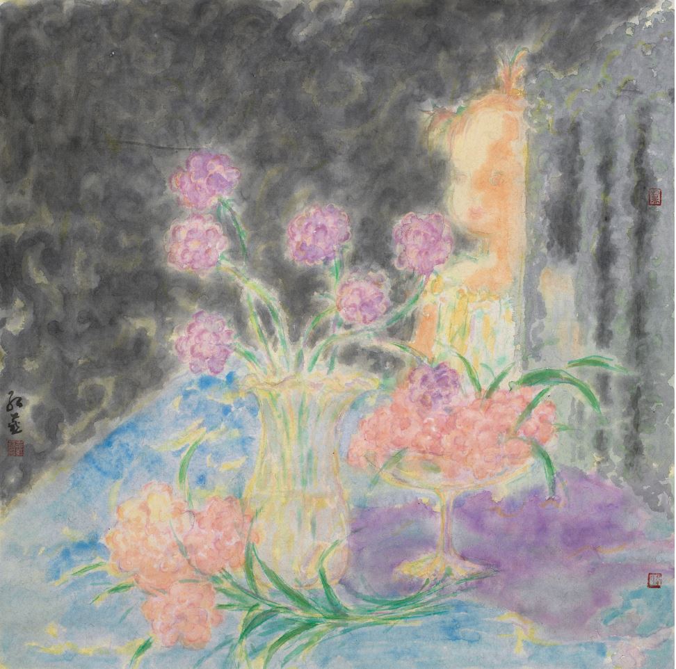韦红燕《桌边女孩6》 69×69cm 纸本设色 2014年
