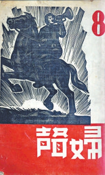 《妇声》第2卷第8期封面设计是项飞的木刻画:《自己的马》。项飞是中国现代著名的木刻版画家,其艺术创作生涯跨越多个重要历史时期,以战斗性、现实主义风格著称。画面中,一位妇女骑在一匹奔马上,拿着喇叭让我们仿佛听到那个年代的呐喊。这匹奔马,马鬃飞扬,四蹄腾空,似要冲破画框,奔向远方。