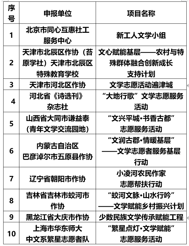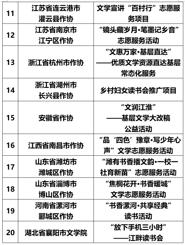 2026年度文学志愿服务示范性重点扶持项目名单公布