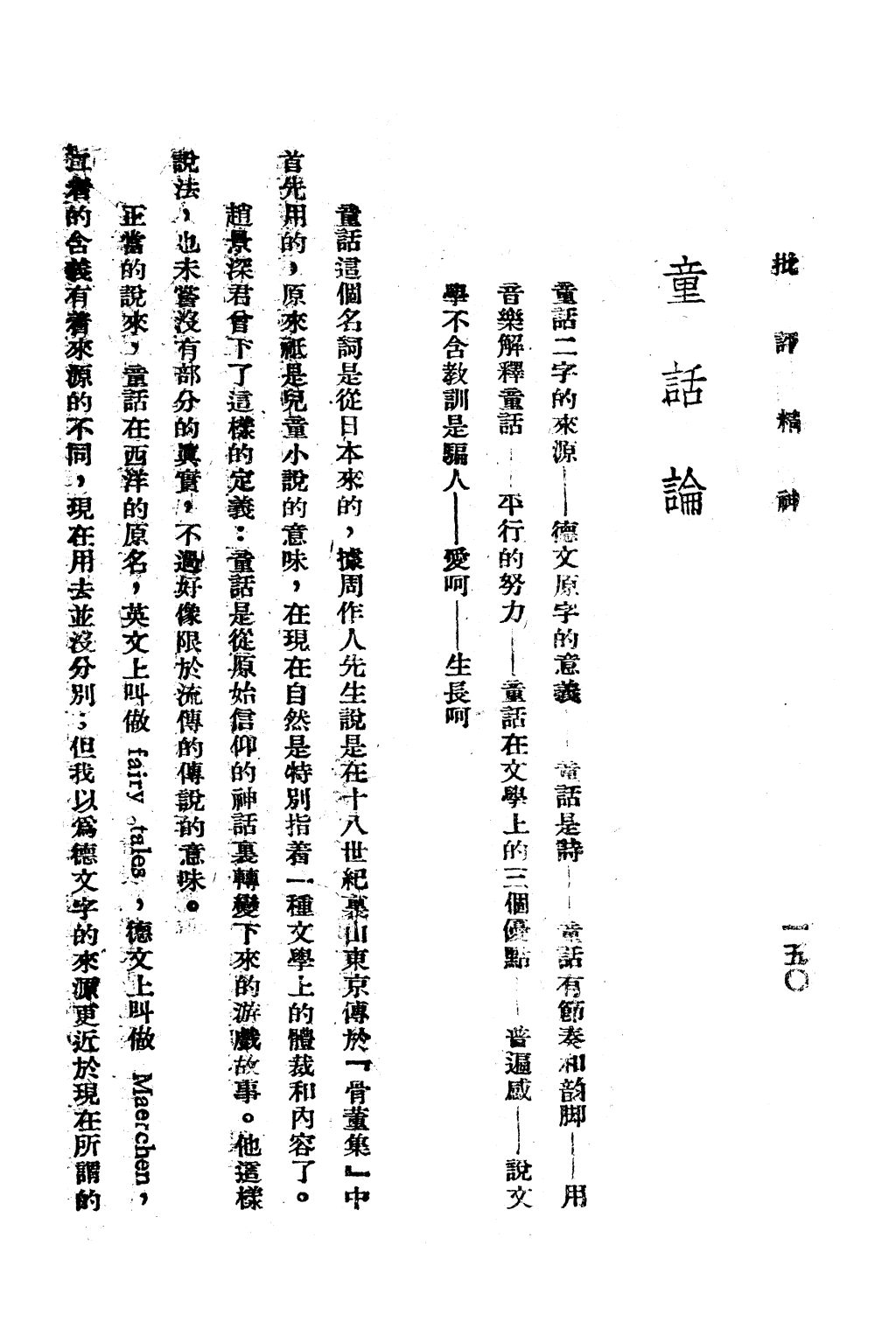 从二三十年代起就投身于儿童文学翻译、创作和研究的李长之,尽管还不能确定是否受到过松村武雄的直接影响,但他在研究童话时的一些心得体会,倒是不妨拿来和《童话与儿童的研究》作参照。他在《童话论》(收入《批评精神》,南方印书馆,1943年)里直截本源地判定“童话是诗”,原因就在于二者都非常注重“节奏和韵脚,用再通俗的意义讲,便是有起伏和往复”。而这种错落循环的变化,就可以使人产生美感。为了证明这一点,他一口气分析了三部童话作品,第一篇便是“由哥利姆(J. und W. Grimm)编辑的《雪女》(Sneewittchen)”。他指出“在这童话中的那位继母有六七次去害公主,这便是一种往复,一种韵脚,而每次都是继母失败和小公主得到胜利,这便是起伏,便是节奏”,随着情节的铺展,读者时而紧张担心,时而放松释然。尤其是天真烂漫的儿童,更容易受到熏陶感染,因为他们“是根本上近于诗的,根本上欢迎重复的韵脚似的叙述的,在他们的创造的探险的心上,是最爱接受起伏的调子的,可以振起他们灵敏的喜悦与恐怖之同情”。尽管由于记忆有误,出现了“六七次去害公主”这样的舛错,但他还是用充满深情的描述,触动了读者的美好回忆,也勾起了一探究竟的好奇。