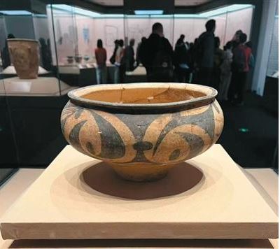 河南三门峡庙底沟遗址出土的仰韶文化彩陶盆。