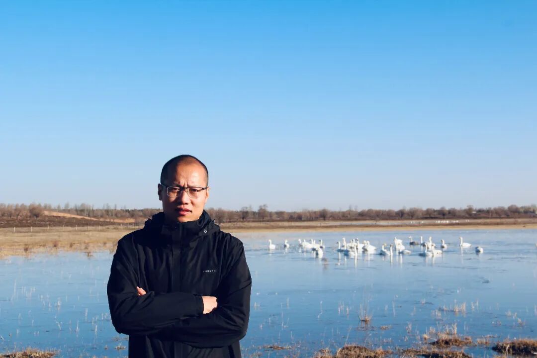 他脱掉外衣,试探几次后,缓缓蹚进了清凉的河水里。这时,从附近的湿地飞来两只白鹭,它们在天上盘旋,他站在浅水处,抬起头看,等那两只白鹭落在水边后,他又接着往深水区域蹚去。没多久,水就漫过了他的大腿。他的背影在灿烂的晨曦里摇摇晃晃,我感觉周围所有的鸟都转过头来,目不转睛地注视着他,它们能理解此刻他的处境吗?他就像是朝着笼罩幽暗之光的天的尽头走去,身影愈来愈小了,后来被河水完全吞没了,他消失在了乌兰木伦河里。河面上寂静得很,一丝风都没有,四周也看不到人影。就在我紧张起来时,他在距我一二百米的下游处露出头来。他朝着我大喊,但我听不清他在说什么,只觉得他心情很好,特别激动。接着他又一头扎进水里。