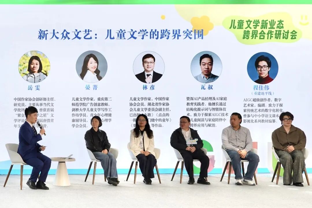 随后举行的圆桌论坛围绕“新大众文艺:儿童文学的跨界突围”展开。岳雯从理论高度破题,她表示,新大众文艺蓬勃发展,为我们带来了创作生态、作品形态和读者关系的变化,其底层逻辑是互联网思维。未来,我们要解放故事表达的形式,要拥抱技术,拥抱生活,拥抱一切可能,更要珍视与孩子们共同成长的宝贵过程。作家晏菁、林彦从文学创作的具体经验出发,分享了他们对人工智能时代儿童文学面临的机遇与挑战的认识与理解。来自抖音平台的瓦叔和“重建地平线”的程佳伟则展示了AI赋能亲子阅读的实践。儿童文学的未来,正生长于文学性、技术力与传播力的交汇之处。理论需有高度,创作需有温度,实践需有力度。这场圆桌以新大众文艺为方向,让儿童文学在跨界融合中,抵达更广阔的未来。与会专家一致认为,儿童文学创作、出版者和传播者要携手并肩、同心同行,共同推动儿童文学“跨”向新境界、“创”出好春光,用更鲜活的方式照亮每一个孩子的成长。