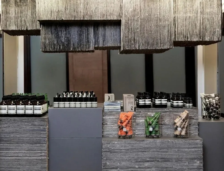 澳大利亚品牌伊索(Aesop)近年来在部分旗舰店与文化快闪项目中设置了阅读空间与书单展示区。伊索纽约快闪店,用1000份废弃的旧《纽约时报》来做展台,上写惠特曼的名句“保持好奇,而非评判”(Be curious, not judgmental);伊索切尔西店则和创刊于1953年的文学杂志《巴黎评论》合作,店铺天花板上的悬浮由原版《巴黎评论》组成的艺术装置,墙壁上布满记录历史的信件、照片、手稿,店里还陈列着过去几十年里伊索选出的最爱期数。此外发起“女性主义图书馆”活动,将产品陈列改为一系列由女性创作、或女性主题书籍。该品牌用 “文学性”创造了一种氛围、一种体验,让顾客走进门店,都会像走进了一间图书馆、一场展览;文学书籍与思想读物更多以“空间陈列物”与“文化氛围营造要素”的形式存在,其功能不再主要供长时间阅读,而是作为进入某种文化气场的象征性入口。