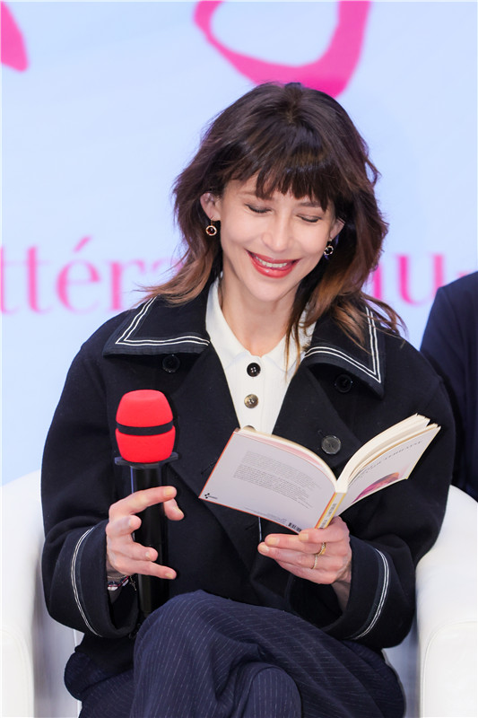 苏菲·玛索在现场用法语朗诵《我总是让一本书摊开在那里》