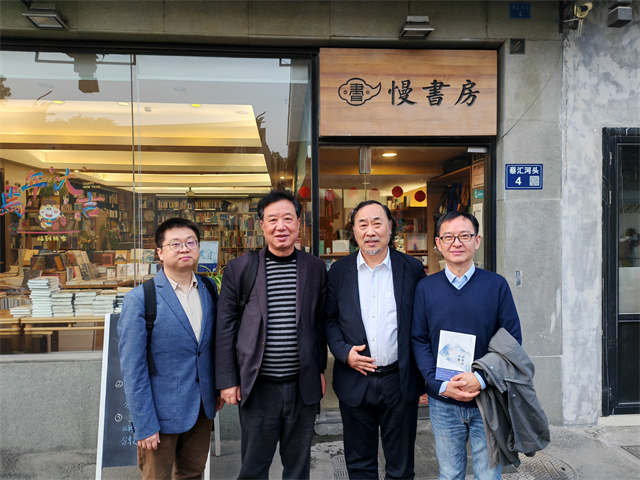 茱萸、王尧、张清华、季进(从左到右)在苏州慢书房前合影