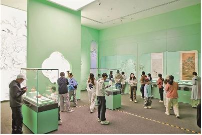 开展一个多月来,观众已超32万人次。据介绍,展厅中的几处打卡点备受观众青睐。其中一处以清代董诰的《平安春喜册图·之一》作为背景,采用四叶草透窗设计营造出古风氛围,随手就能拍出具有美感的汉服写真。另一处以清代青花三多纹梅瓶作为前景,插花为背景,营造出花入瓶中的视觉差,让观众轻松定格最美瞬间。记者看到,不少观众特意穿上汉服,在传统窗花前留下一张张和文物对话的精美照片。