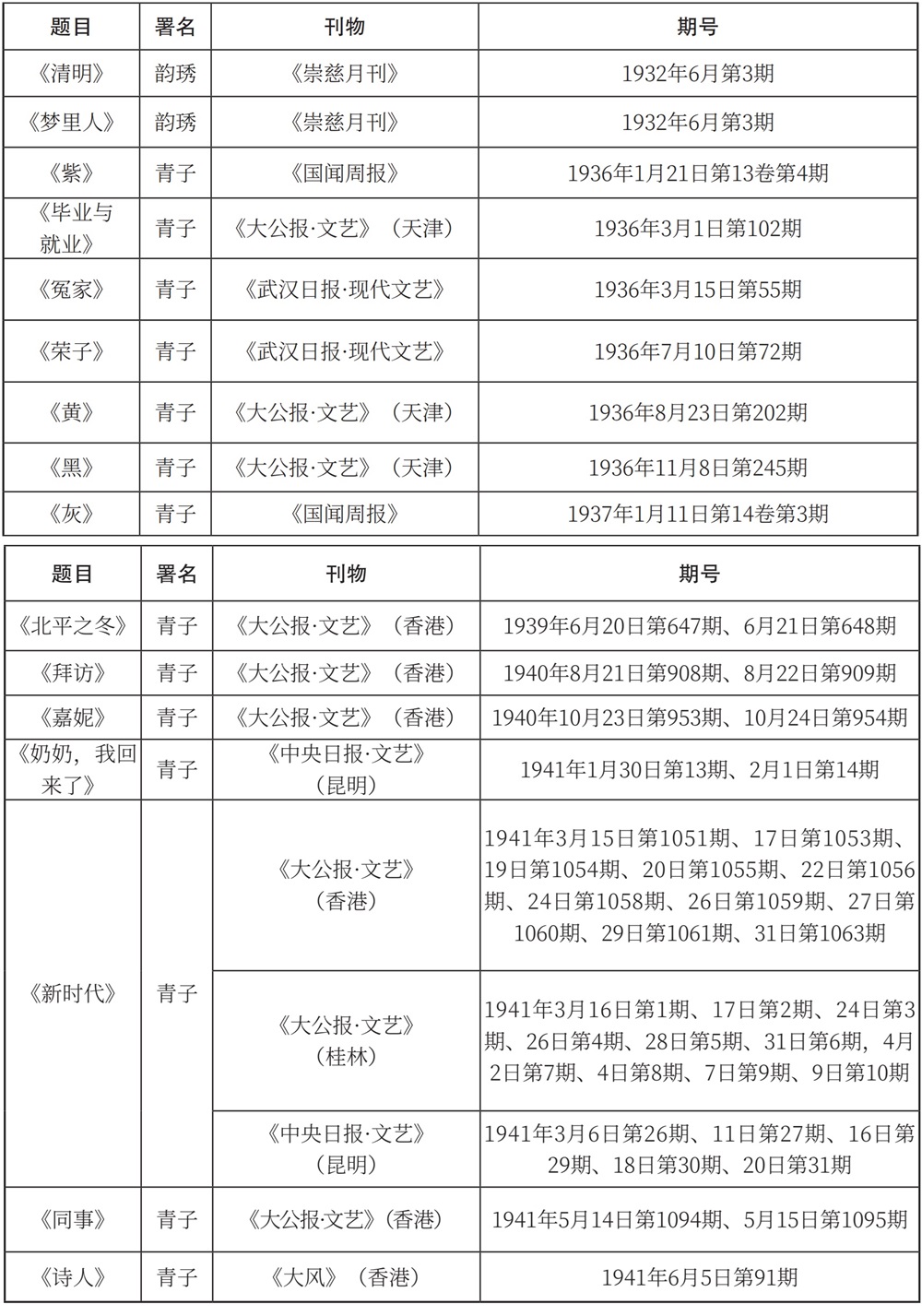 令人不解的是,高青子1936年9月前已经发表了《紫》《毕业与就业》《冤家》《荣子》《黄》,已成为北平文坛小有名气的女作家。《紫》发表当期《国闻周报》“编辑后记”给予颇高评价: